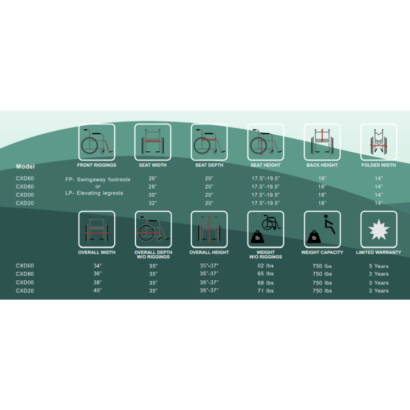 Costcare - Reclining Bariatric Wheelchair- CRX20LP - Comfortable Coast