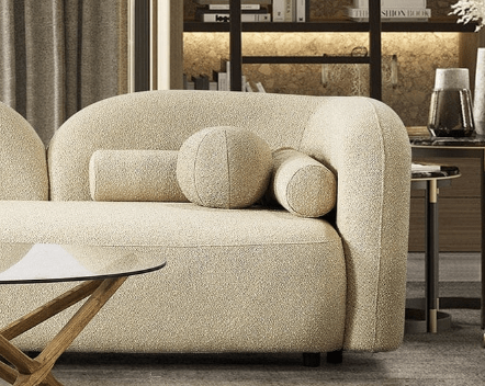 Upholstered in luxurious ivory bouclé fabric, this sofa offers a soft and textured feel that enhances its cozy and welcoming look. The designer-style French bouclé creates an inviting space for family entertainment and guest gatherings, making it ideal for apartments, living rooms, dens, urban lofts, and condos. The sofa's clean lines and minimalist aesthetic embody the essence of Japandi style, ensuring it seamlessly integrates with your existing decor while adding a touch of sophistication.