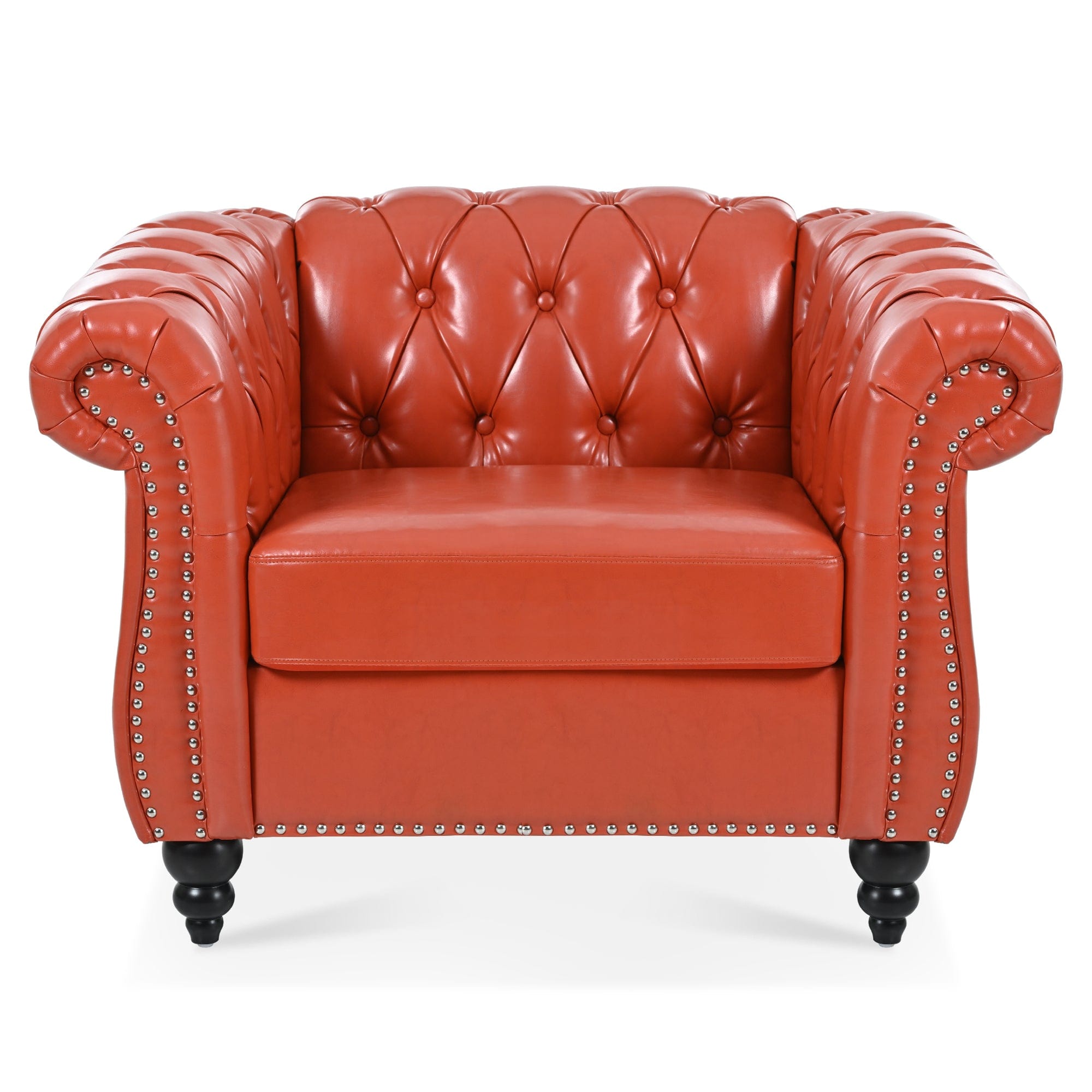 Mid-Century Modern Orange Faux One Seater Sofa - Comfortable Coast