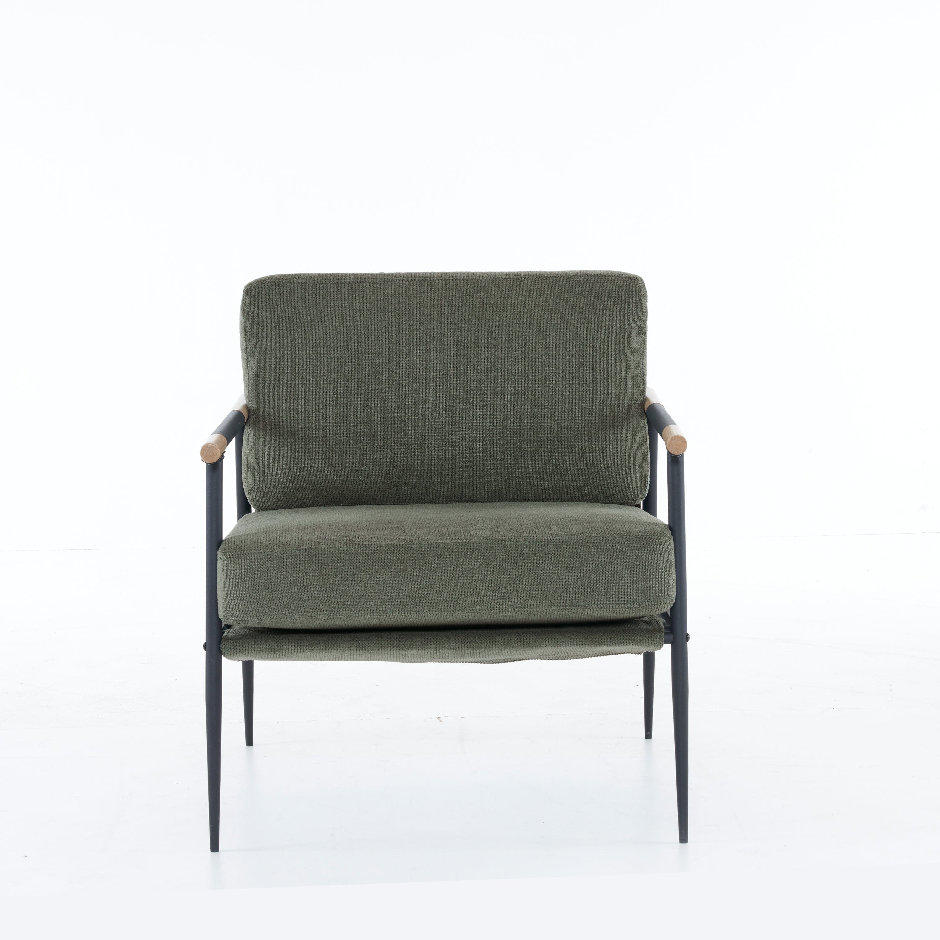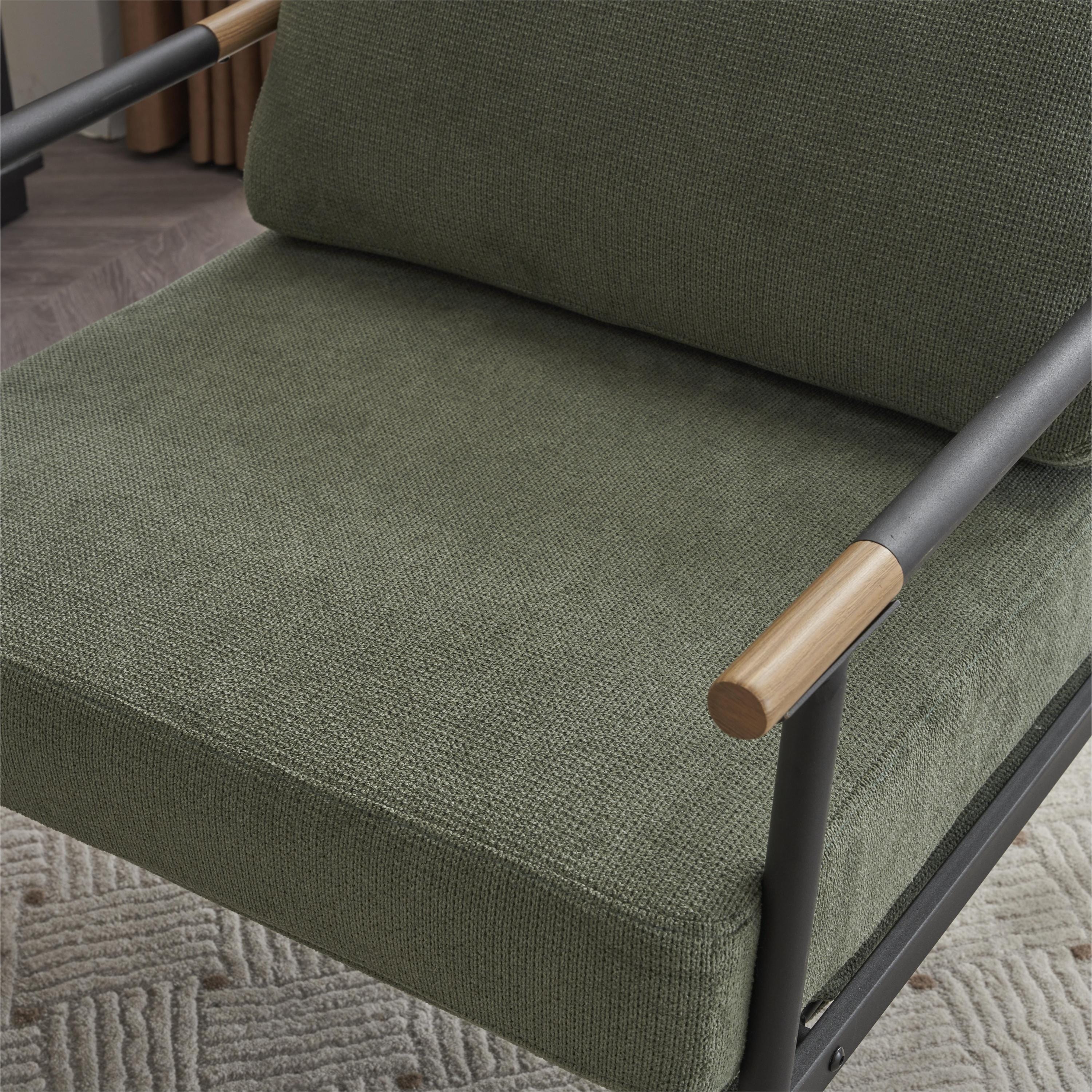 Mid Century Modern Upholstered Lounge Chair In Green Chenille - Comfortable Coast