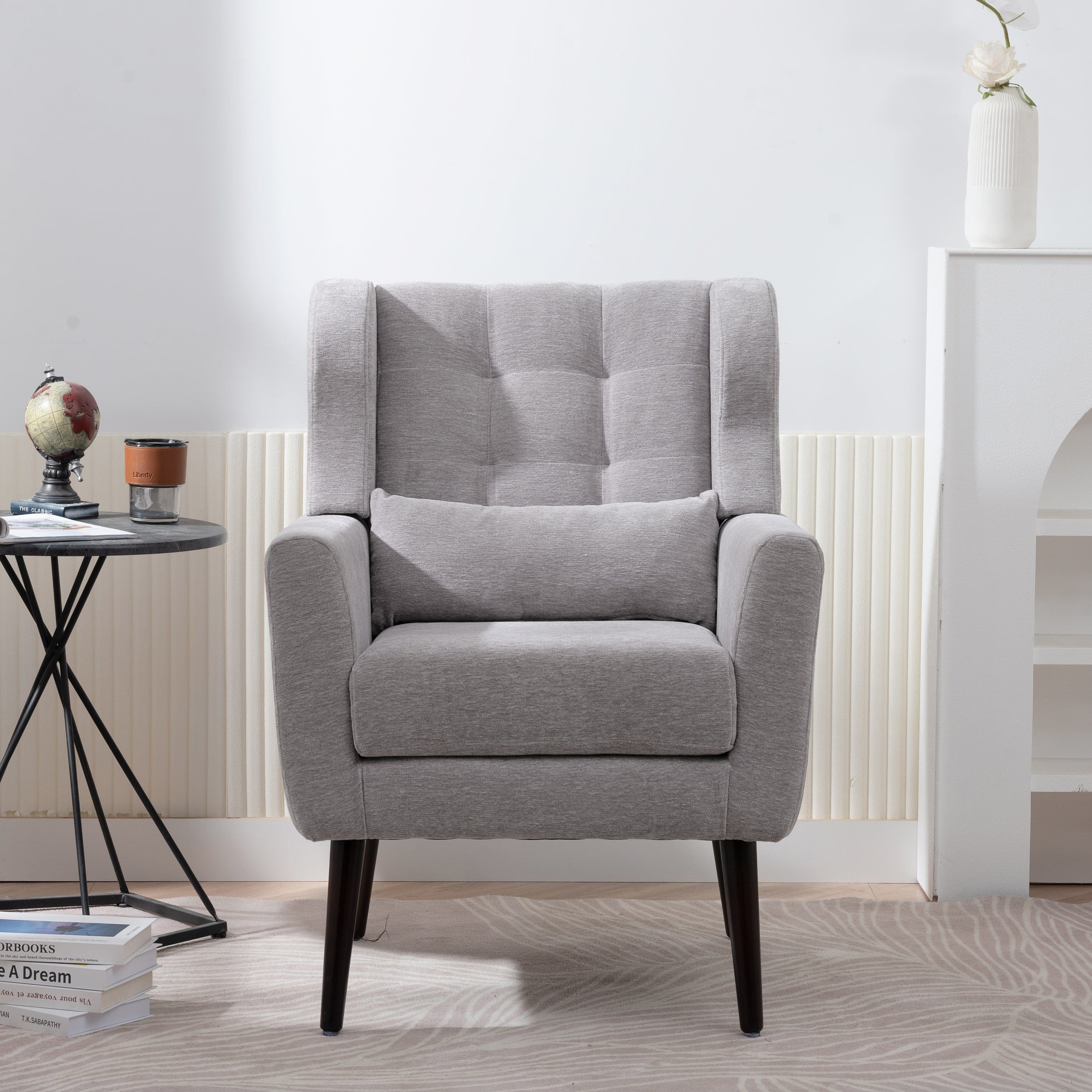 Modern Accent Chair Upholstered in Stylish Gray Chenille