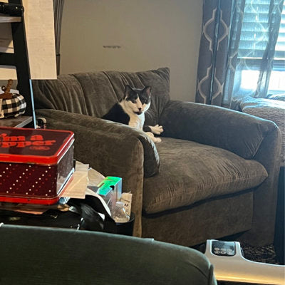It’s a nice comfy chair. Easy to put together & comfortable to sit in. The cat claimed it.