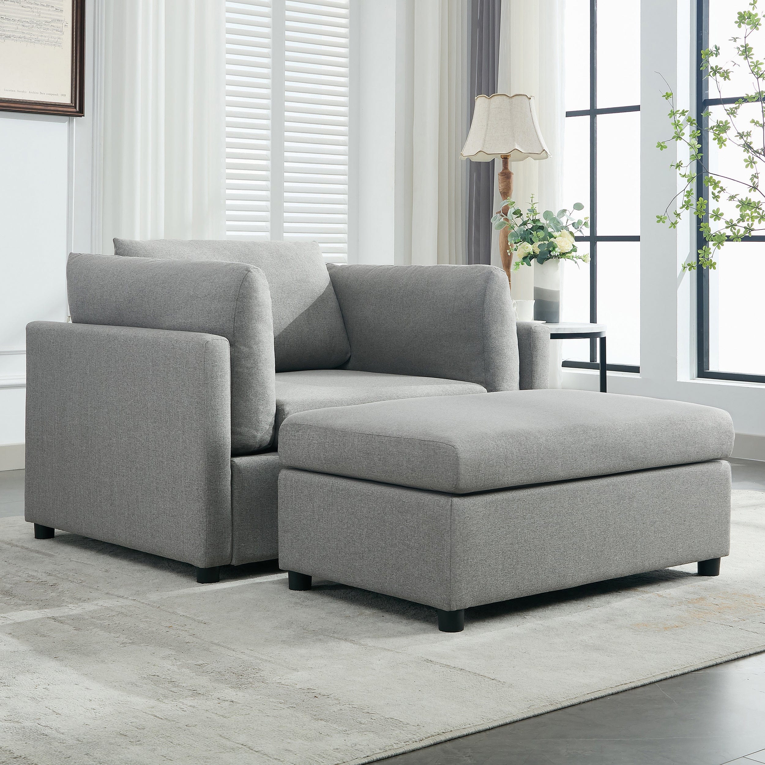 Modern Light Gray Oversized Armchair with Ottoman - Comfortable Coast