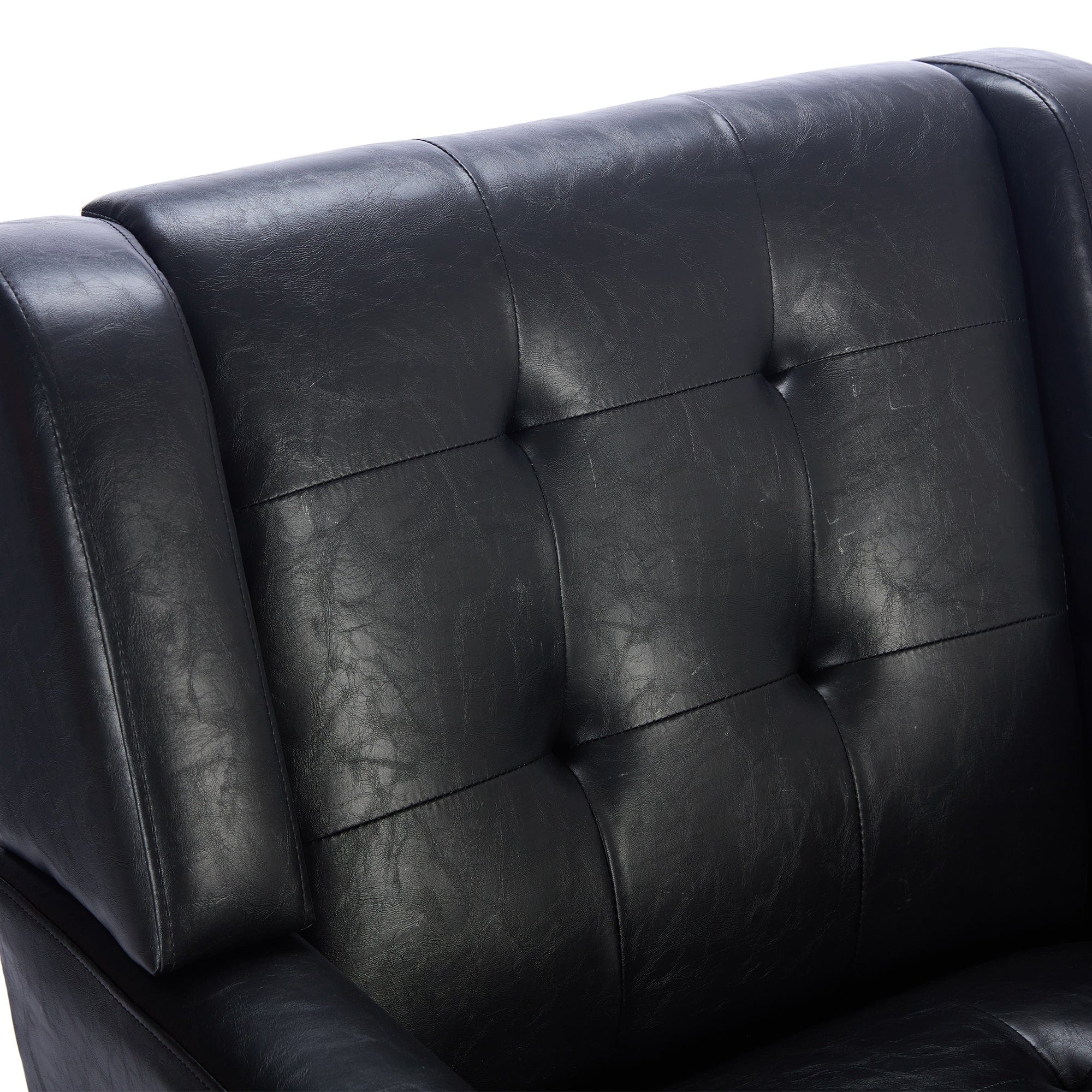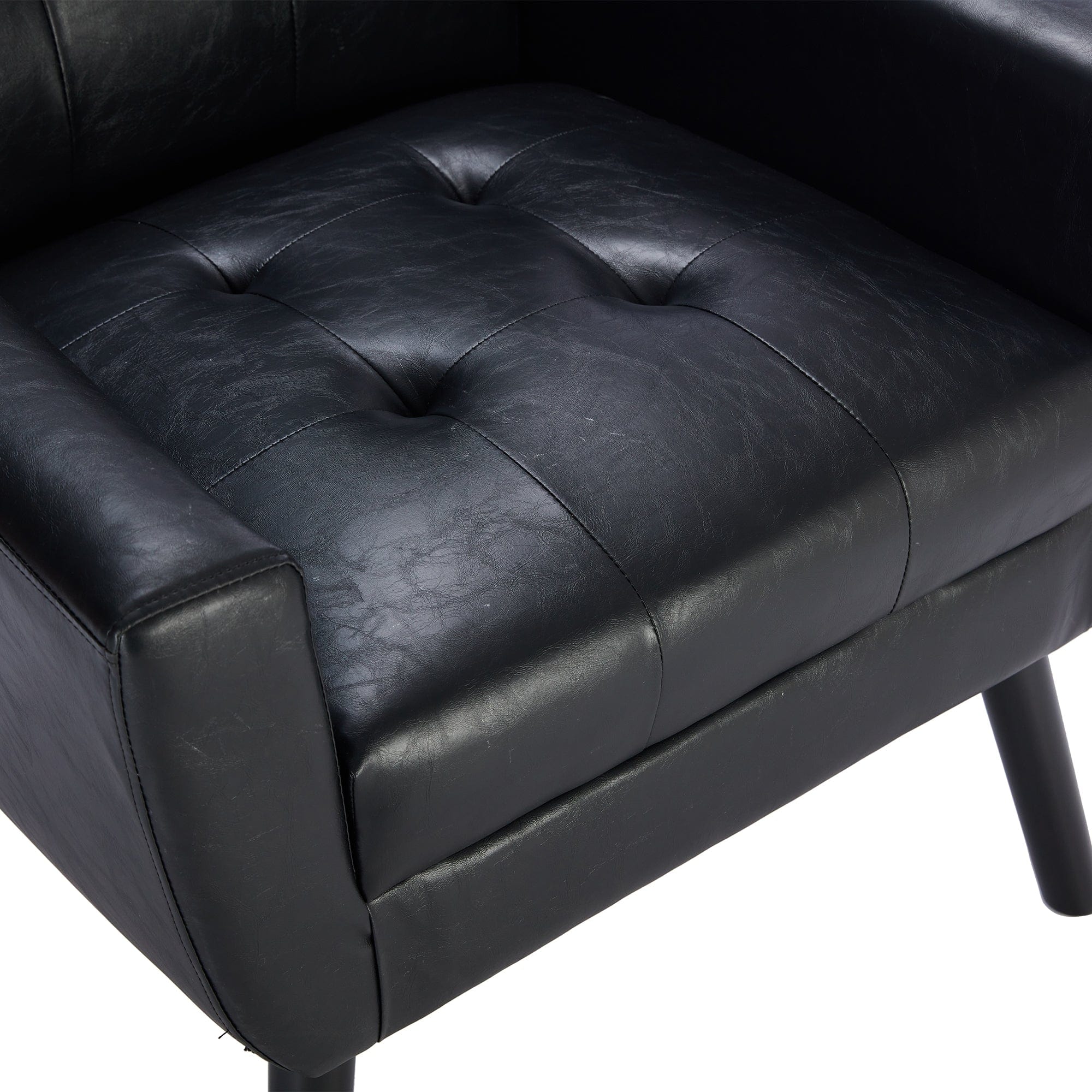 The Black Faux Leather Upholstered Accent Chair combines sleek modern design with exceptional comfort. Featuring a padded seat, ergonomic curved backrest, and clean armrest lines, this chair offers an inviting seating experience. The PU leather upholstery enhances the chair’s sophisticated appeal while providing durability and ease of maintenance. Ideal for living rooms, dining areas, or home offices, this chair is as versatile as it is stylish.