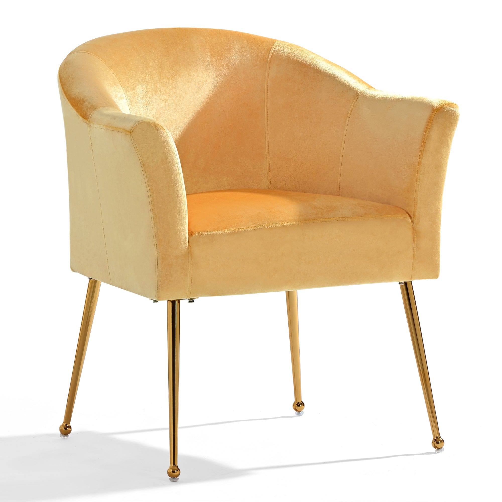 Modern Yellow Italian Velvet Armchair with Gold Metal Legs - Comfortable Coast