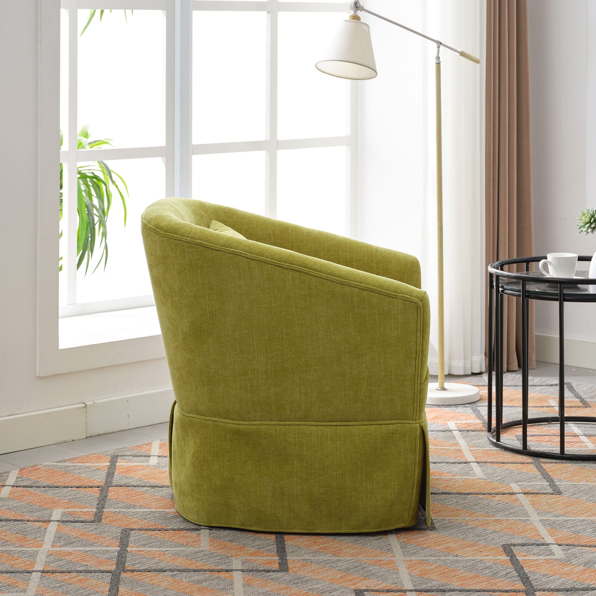 Olive Green Linen Blend Swivel Accent Armchair - Comfortable Coast