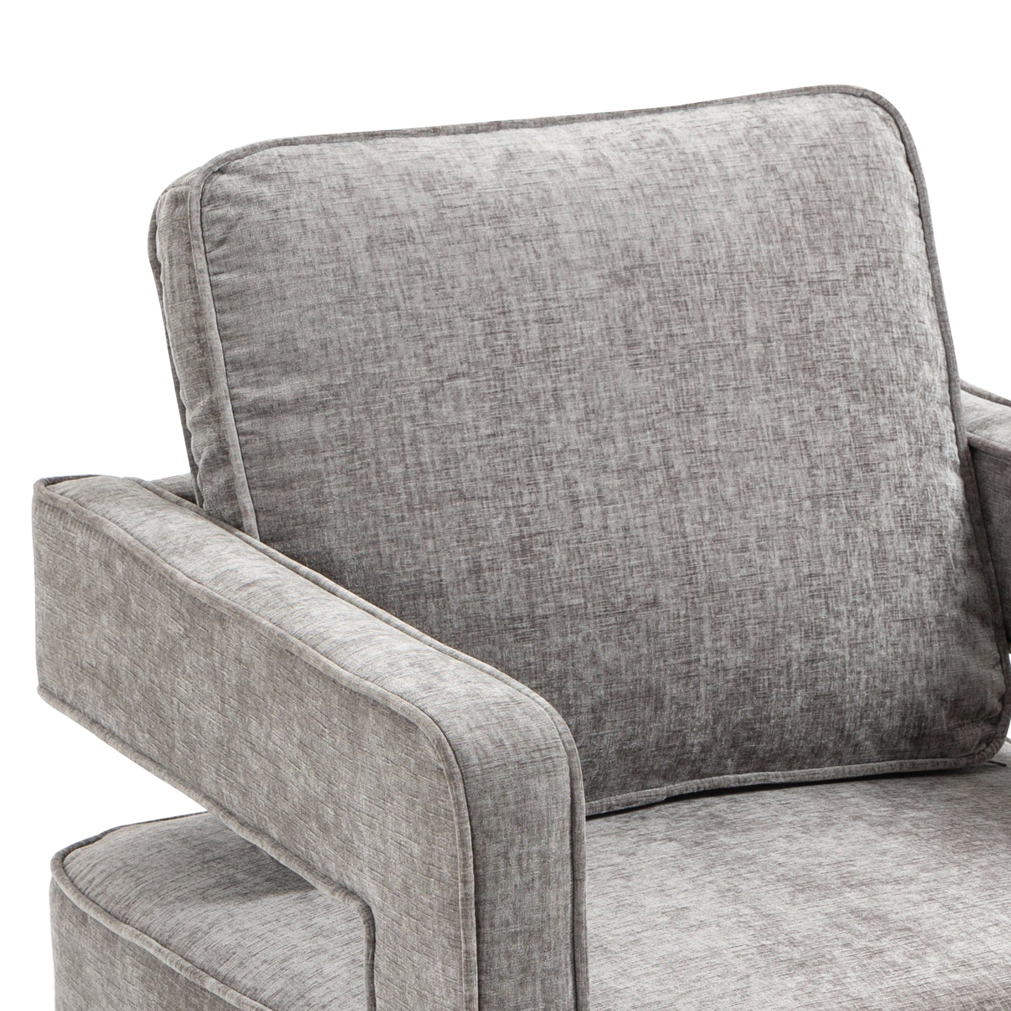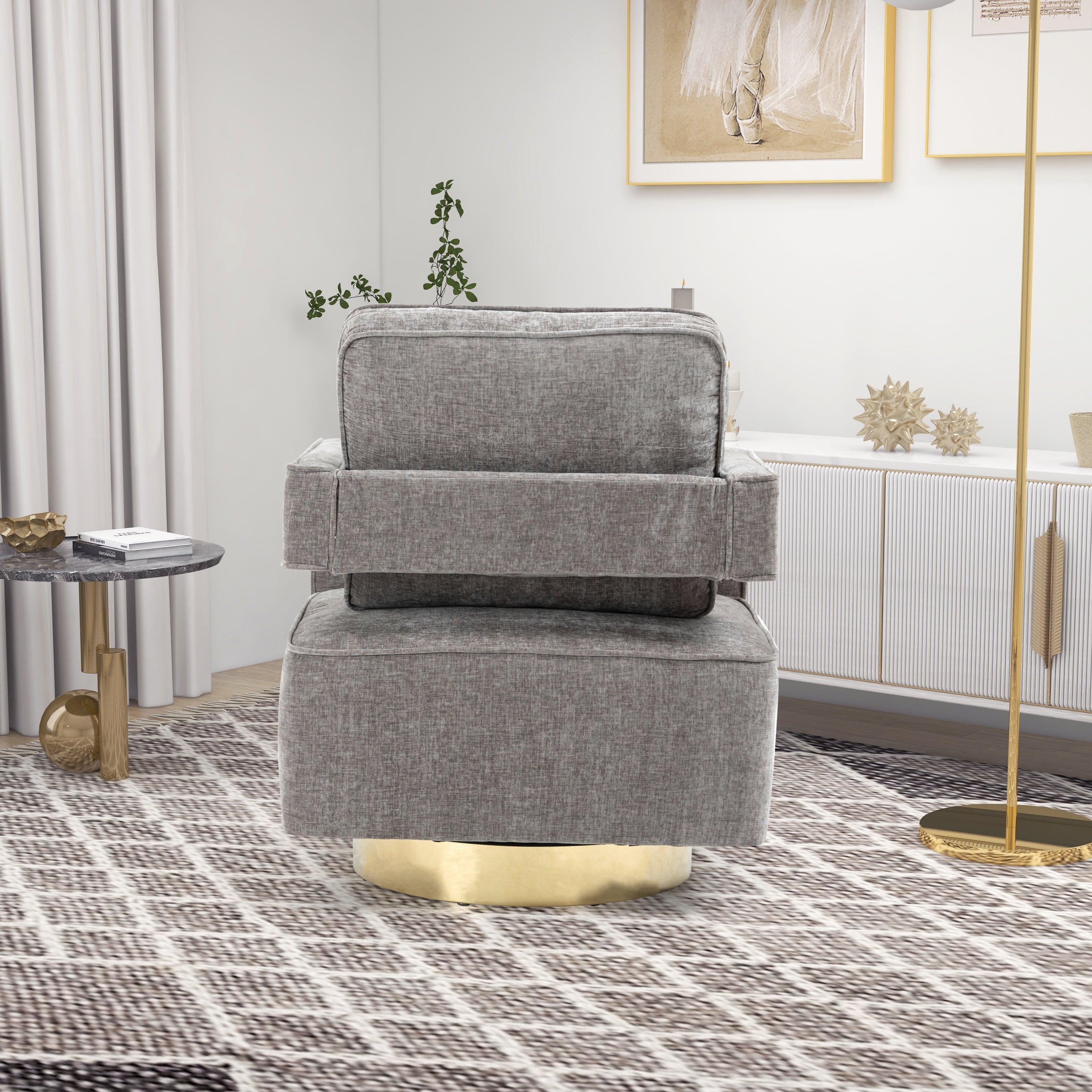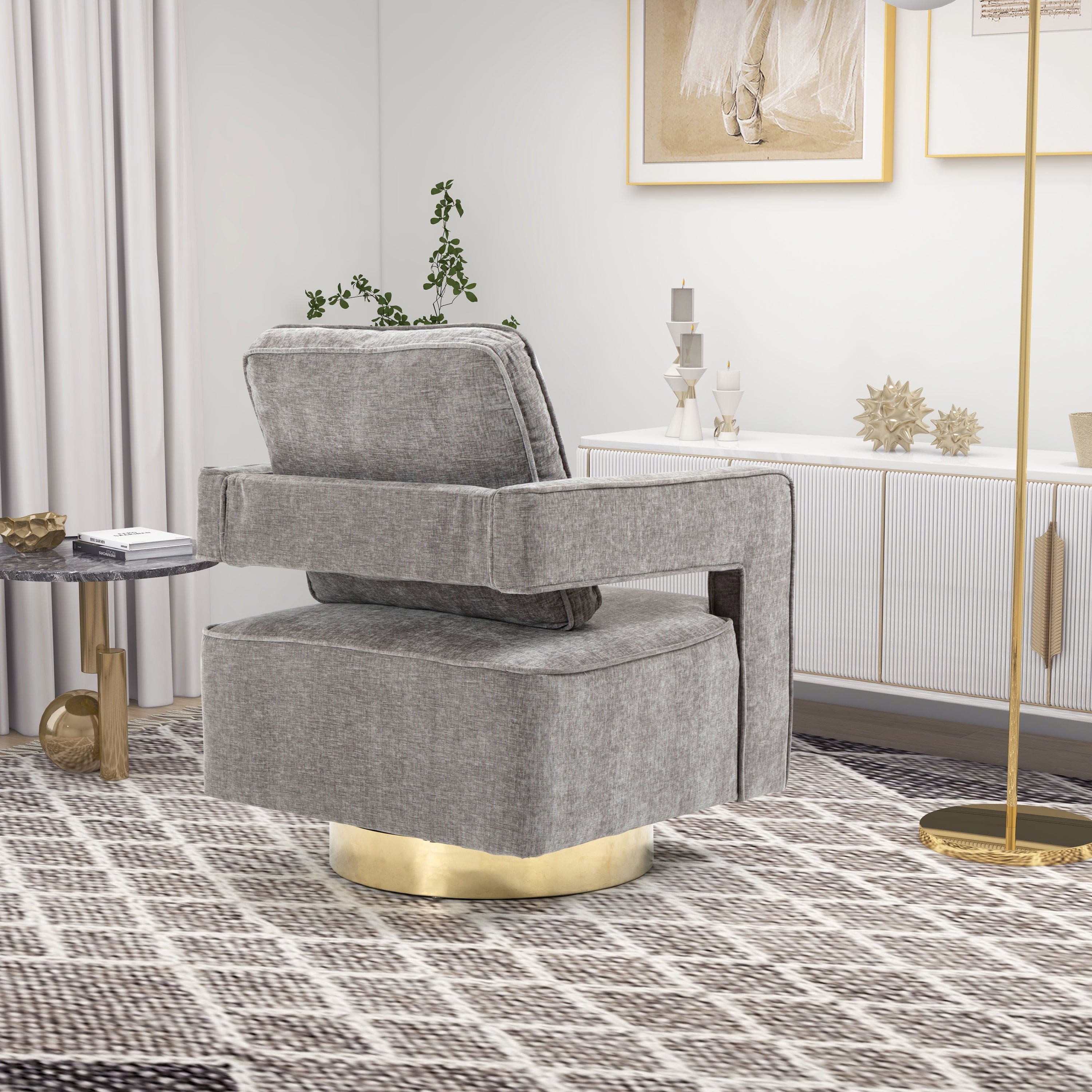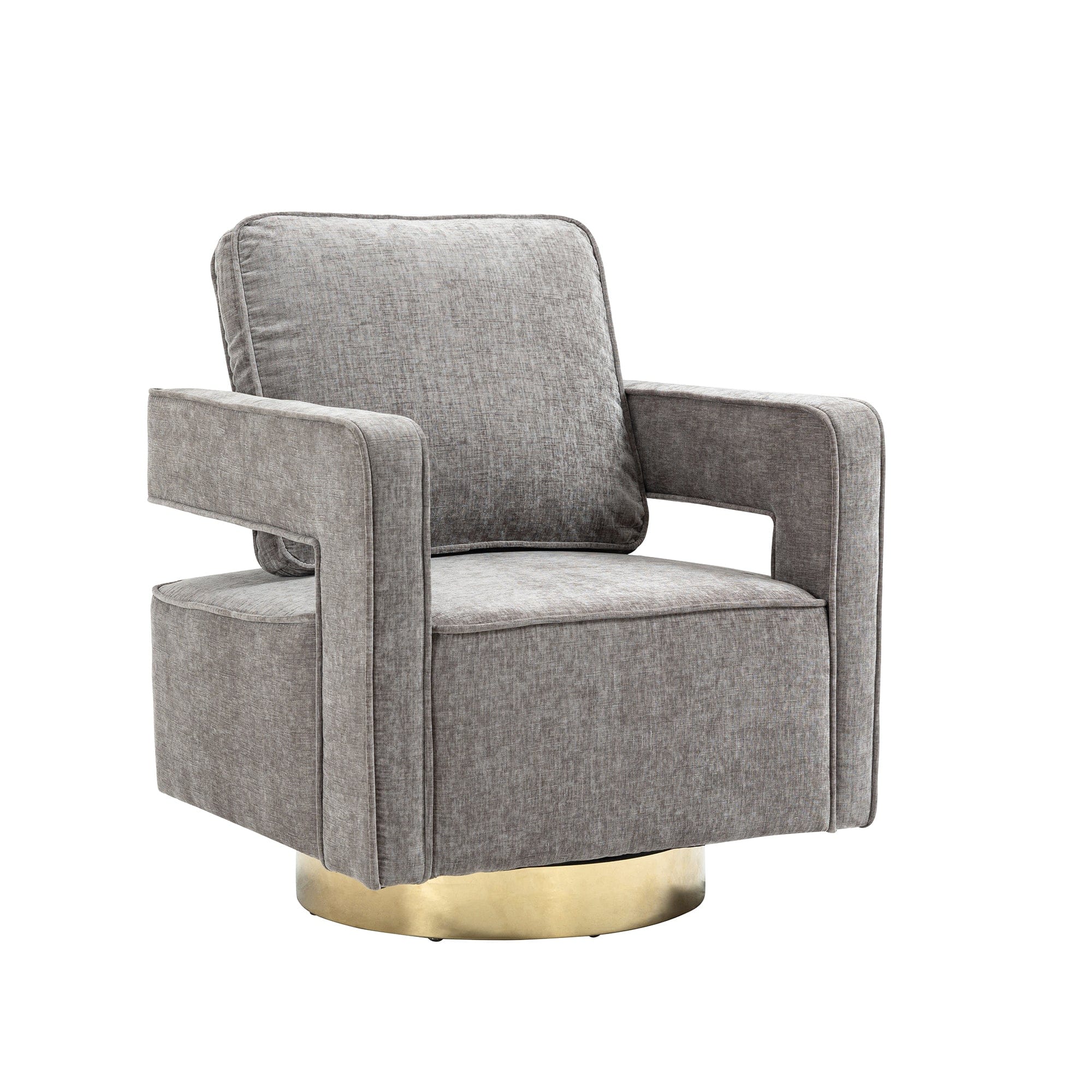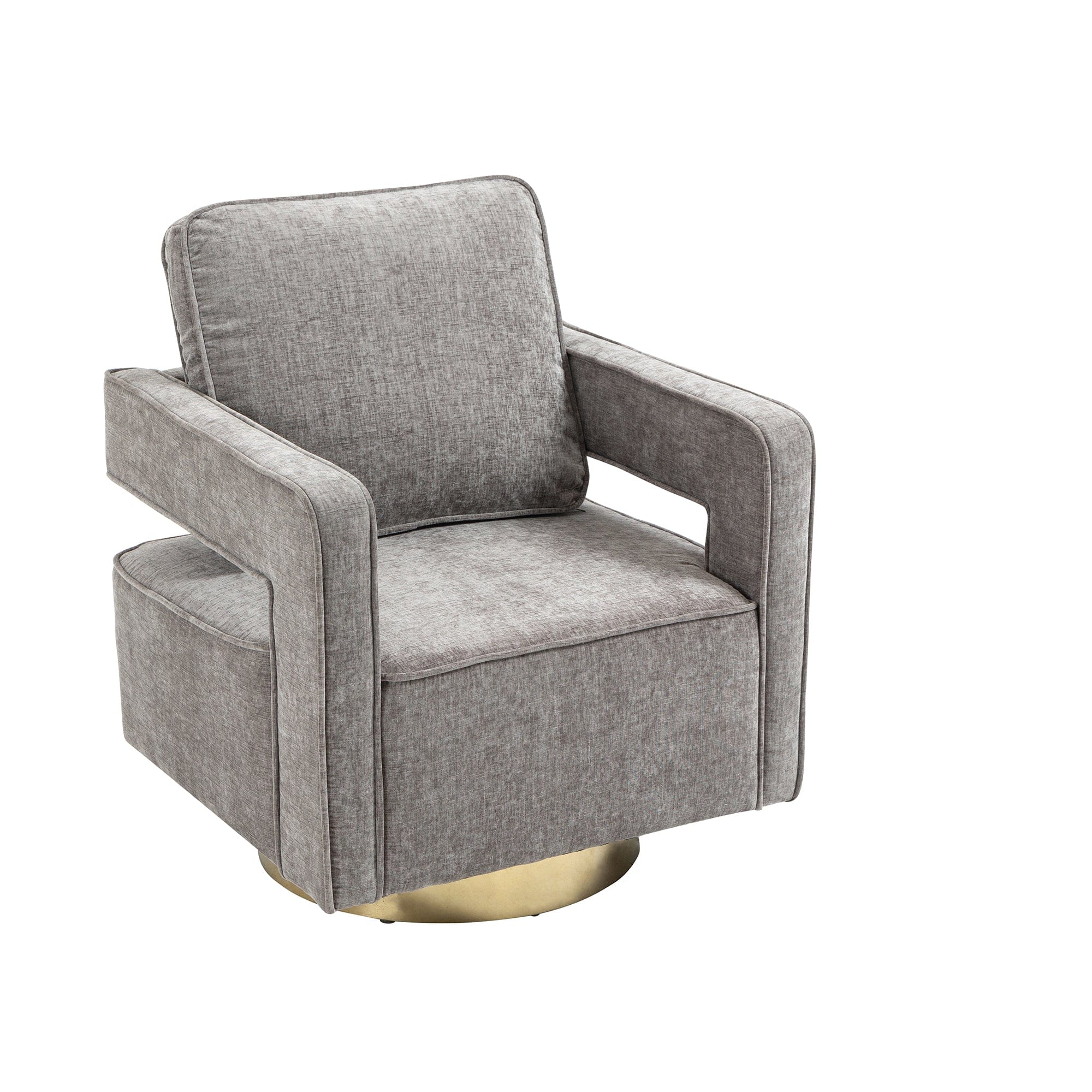 Open Back Gray Chenille Swivel Accent Chair With Gold Stainless Steel - Comfortable Coast