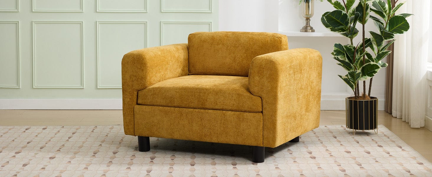 Yellow Woven Velvet Oversized Armchair - Comfortable Coast